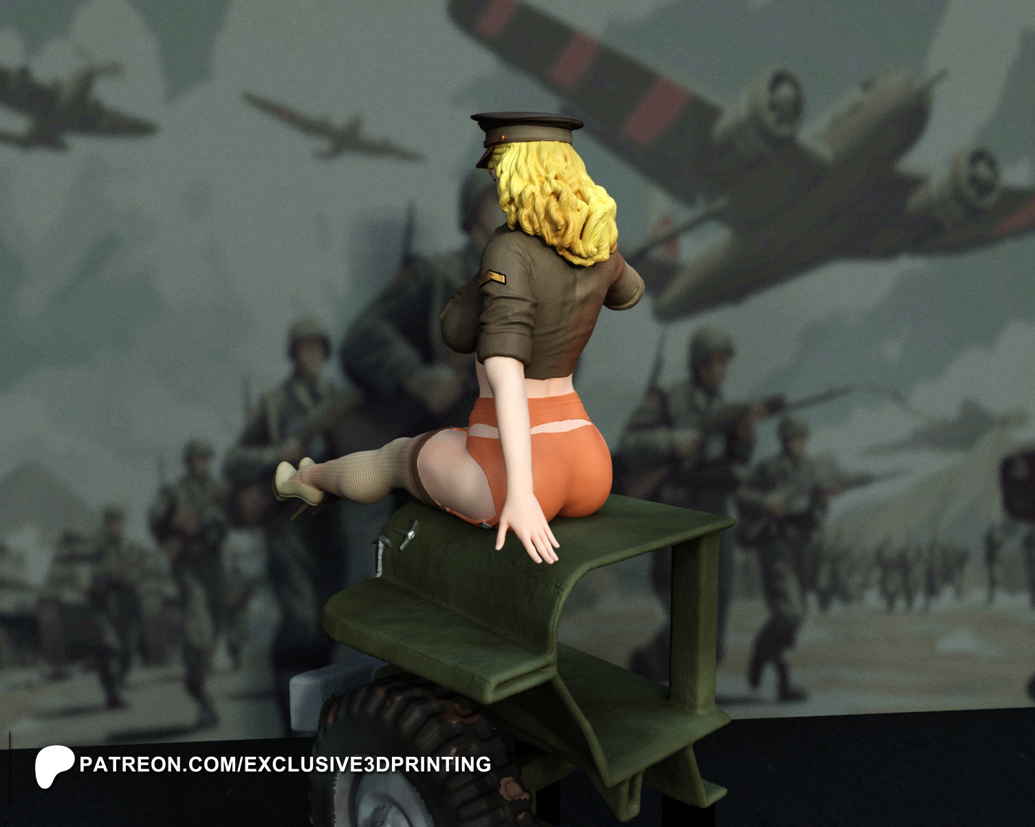 This is a high-quality 3D model of a pin-up style woman dressed as a colonel, designed specifically for 3D printing.